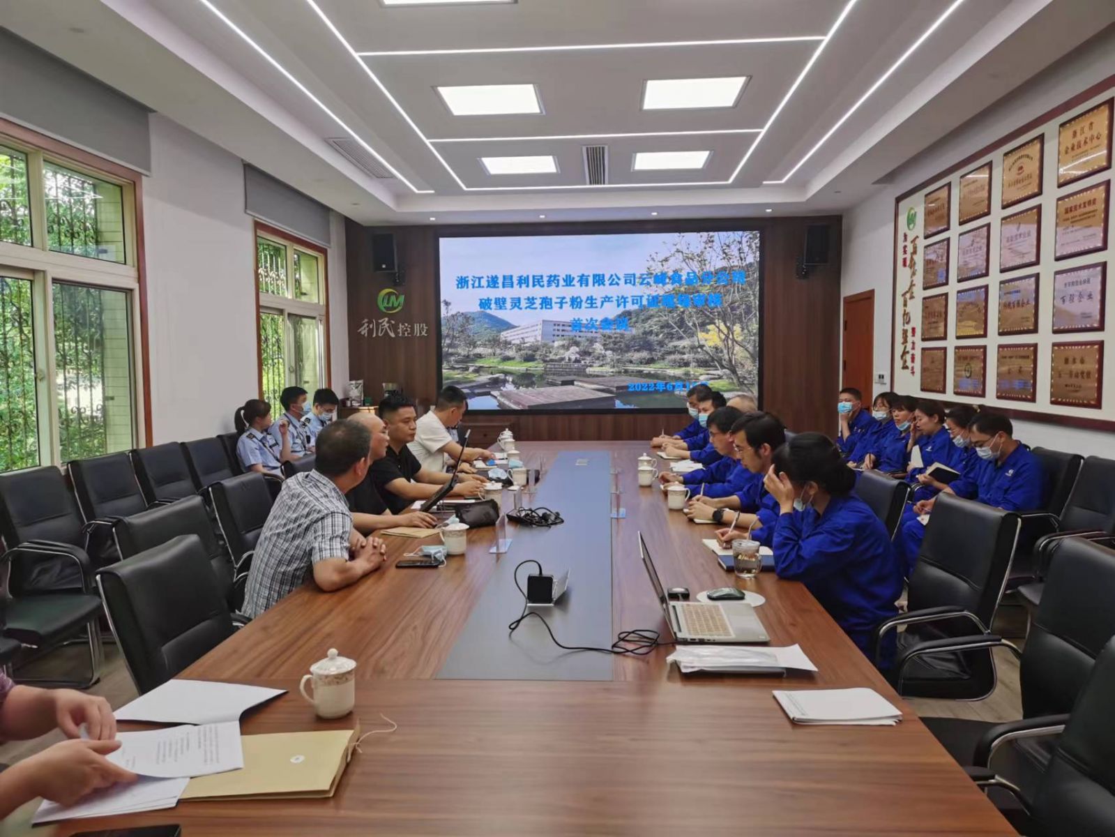 6月15日下午,浙江省市场监管局食品处的副处长周扬带队,由保健食品专家王海明博士、丁宇琦博士、丽水市市场监管局生产处的副处长邹希平组成的现场核查组一行,对浙江遂昌利民药业有限公司云峰食品分公司的破壁灵芝孢子粉生产许可证进行现场审核,遂昌县市场监管局全程陪同了此次现场审核。